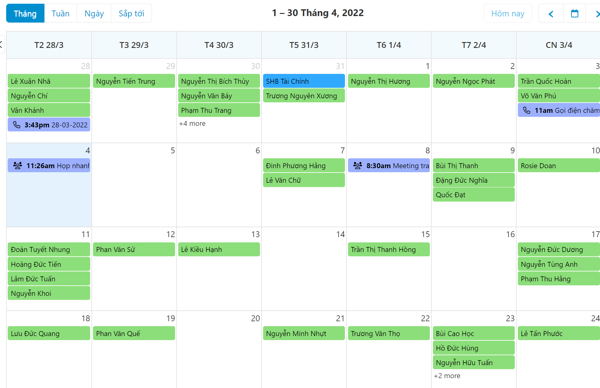 - Lịch làm việc trực quan rõ ràng